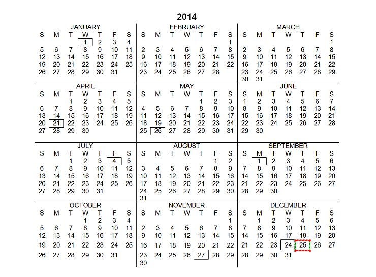 | 2014 CALENDAR & HOLIDAYS | 30 |