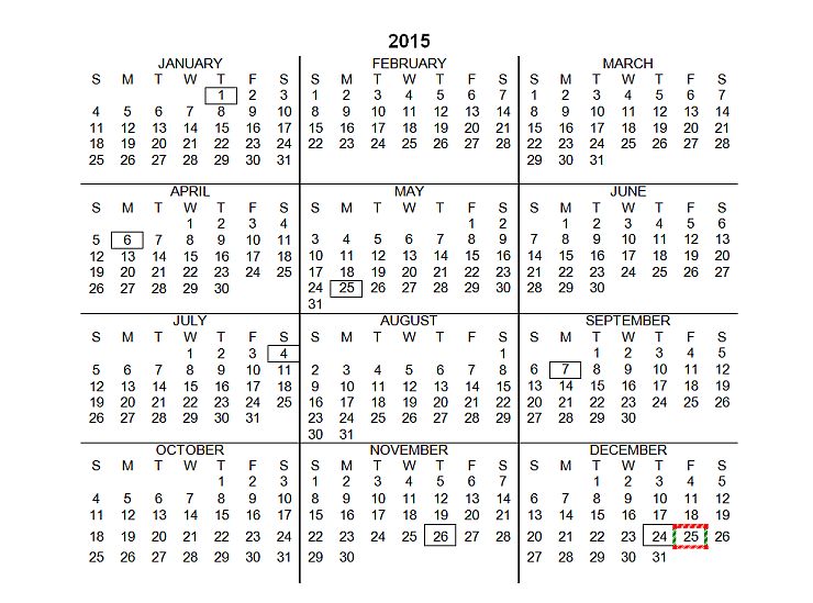 | Thursday, December 25 | Christmas Day |