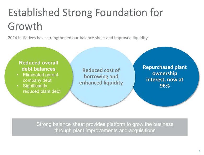 6 6 Repurchased plant ownership interest, now at 96% Established Strong Foundation for Growth 2014 initiatives have strengthened our balance sheet and improved liquidity Reduced cost of borrowing and enhanced liquidity Reduced overall debt balances • Eliminated parent company debt • Significantly reduced plant debt Strong balance sheet provides platform to grow the business through plant improvements and acquisitions