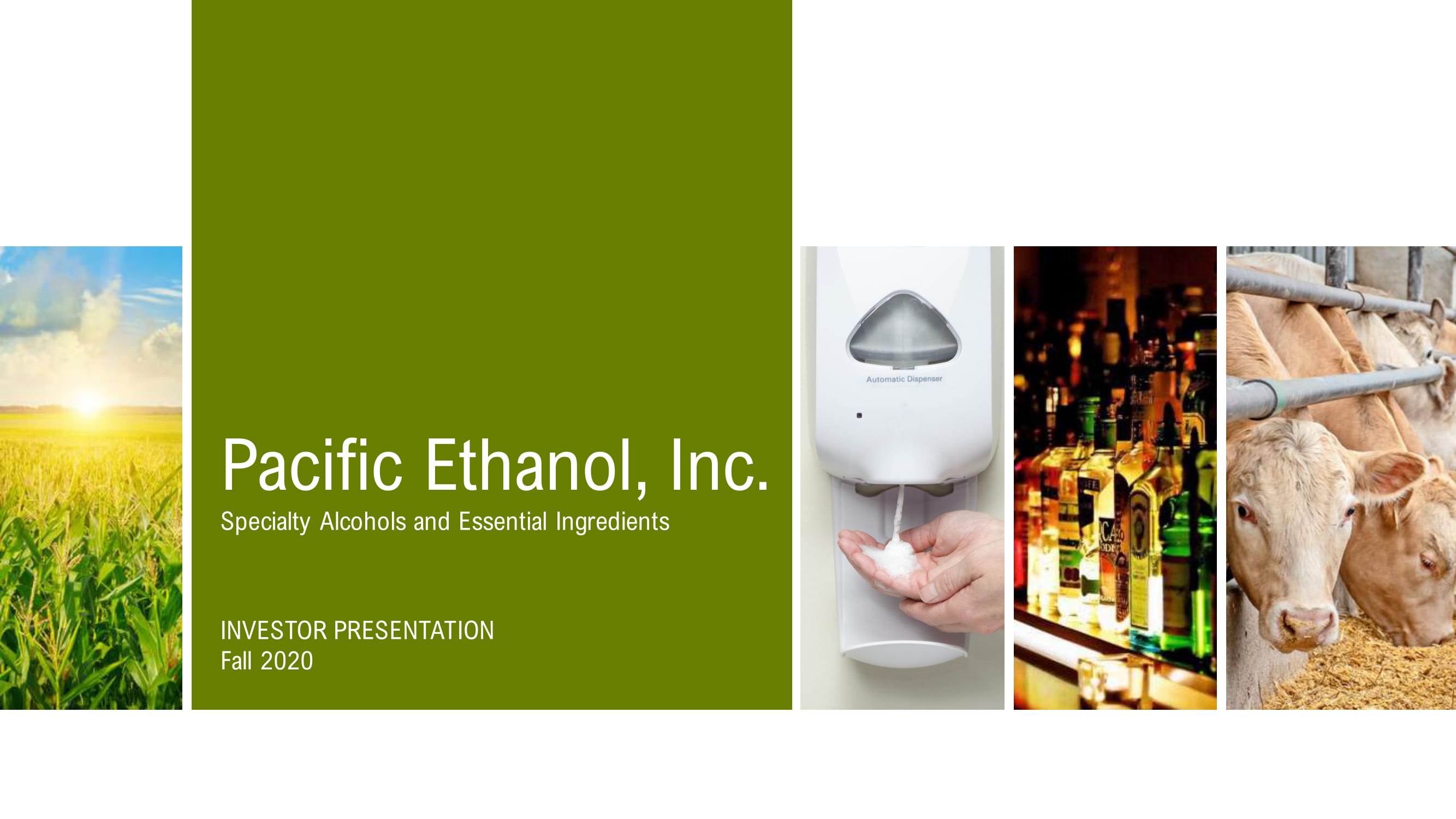 Pacific Ethanol, Inc. Specialty Alcohols and Essential Ingredients INVESTOR PRESENTATION Fall 2020