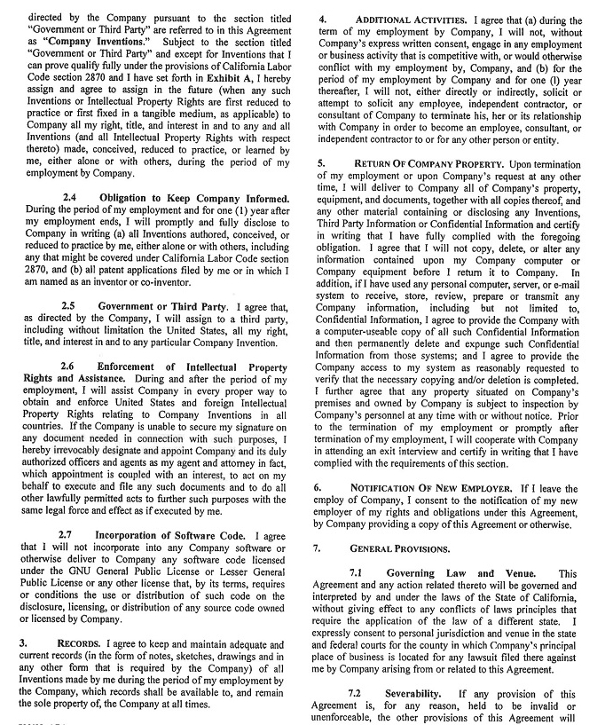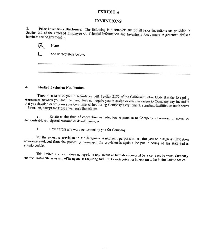 3.1 Confidential Information Agreement. As a condition of employment, Executive agrees to execute and abide by the Executive Confidential Information and Inventions Agreement attached hereto as Exhibit A.